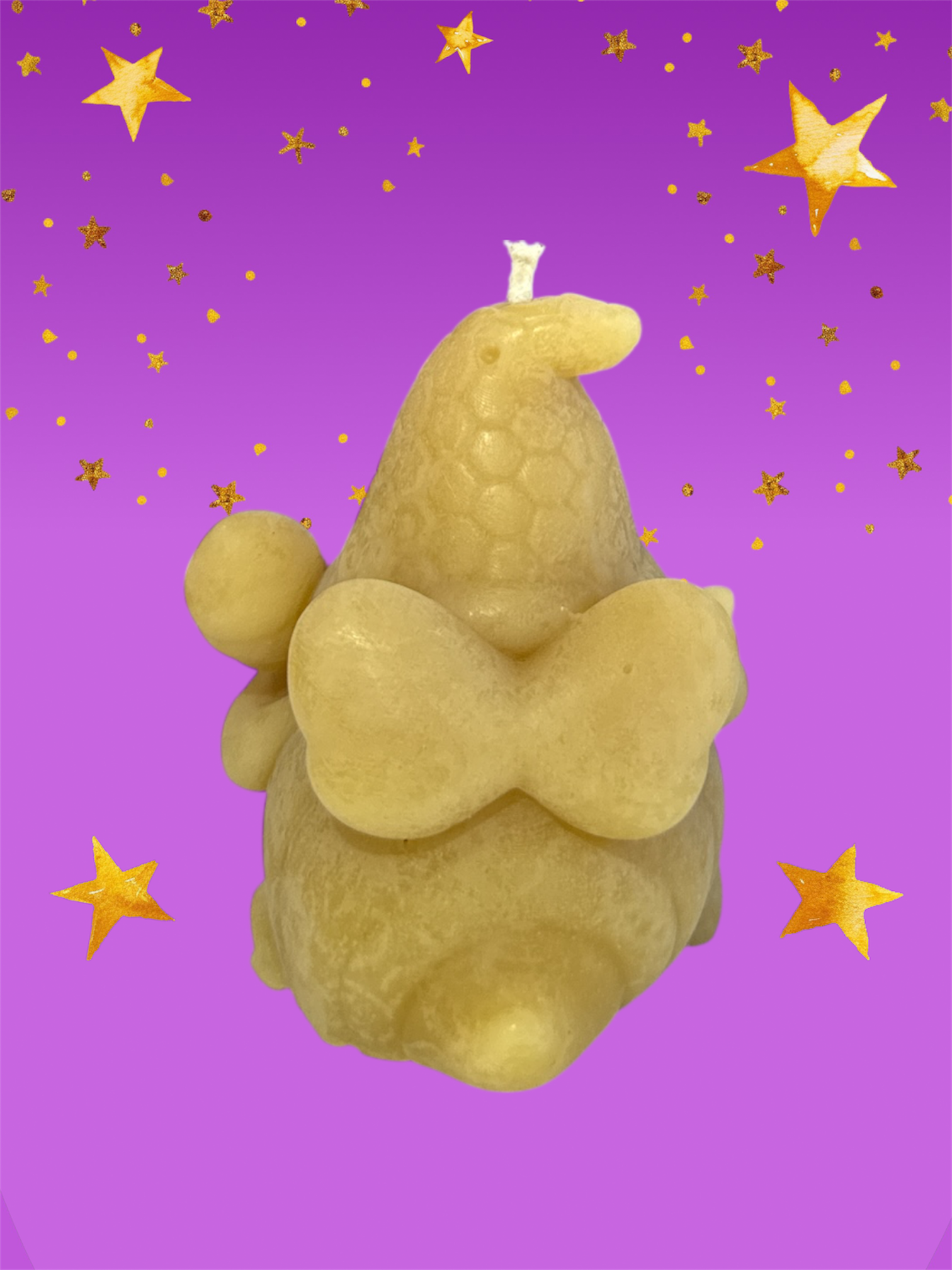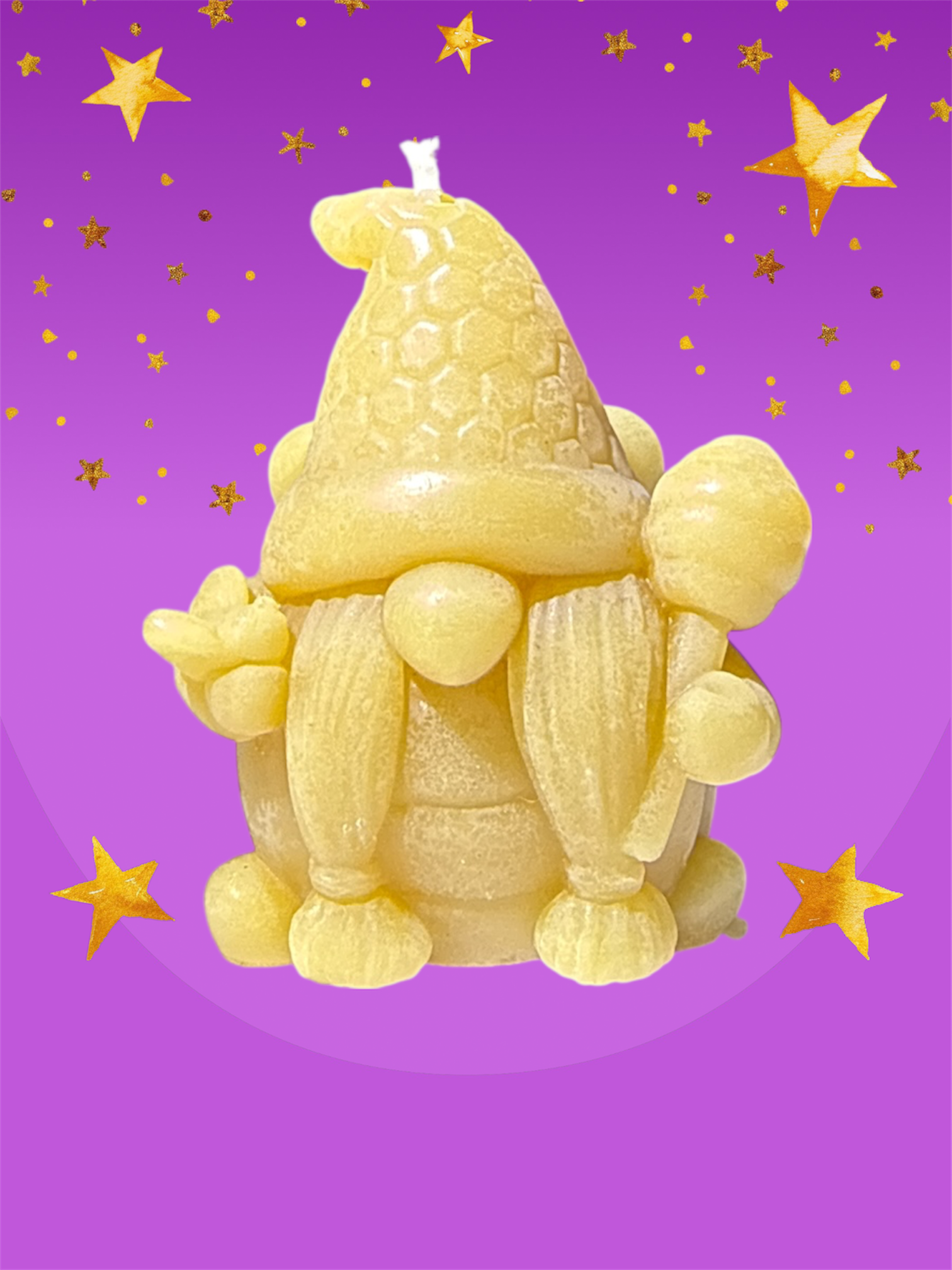 This little Natural Beeswax 3 in Gnome with Honey Wand is ready to serve some delicious Honey to any guest you may have! So cute you may have trouble burning him as a candle, but if you do, rest easy knowing he is made from all-natural beeswax and will burn smut free and is non allergic and free from all other chemicals or dyes. The natural beeswax also gives off a wonderful scent when burnt, if you can bring yourself to burn it