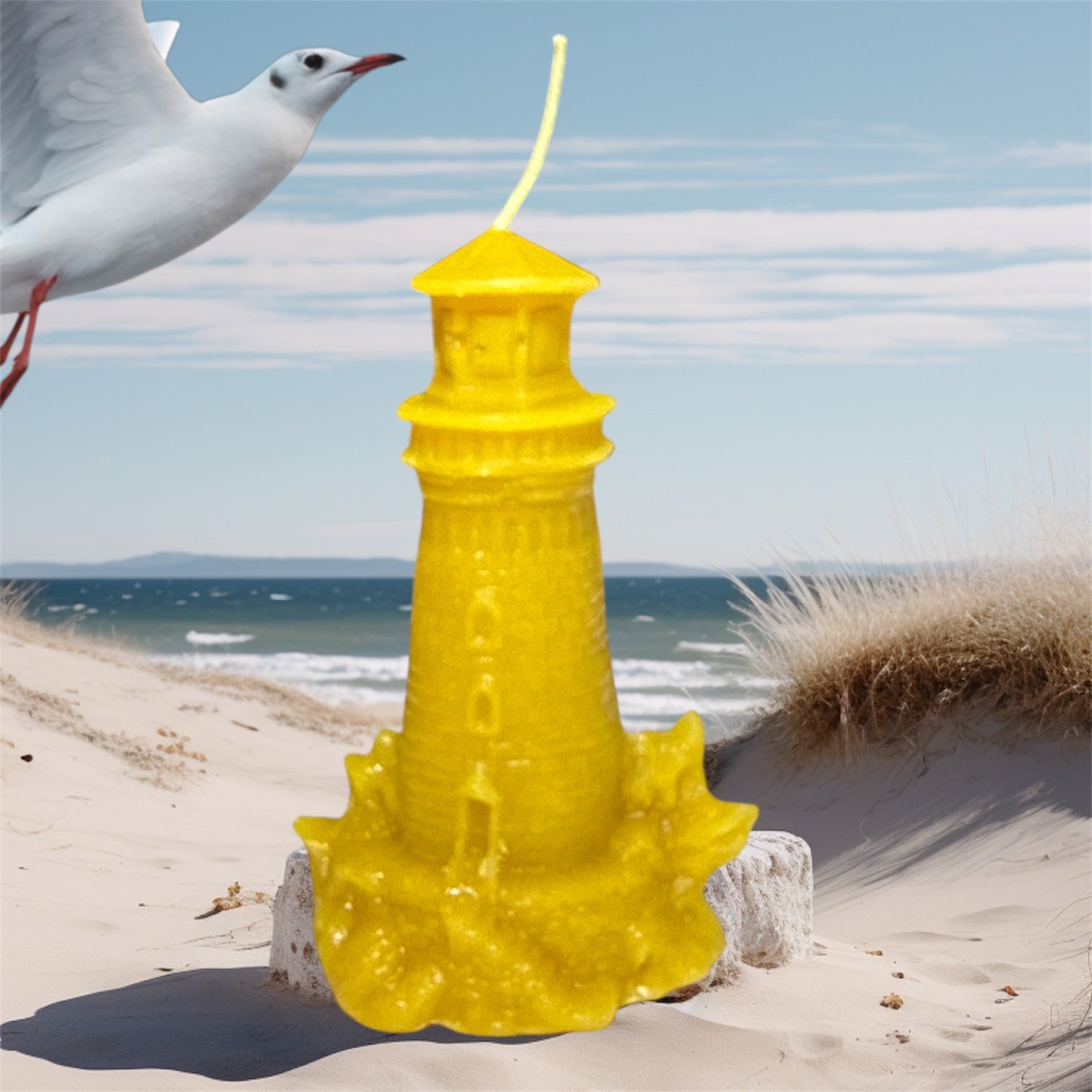 Enjoy the ocean and steer clear of troubled waters with this amazing 3.75 in Lighthouse candle. Pairs well with the seashell pillar candle.
